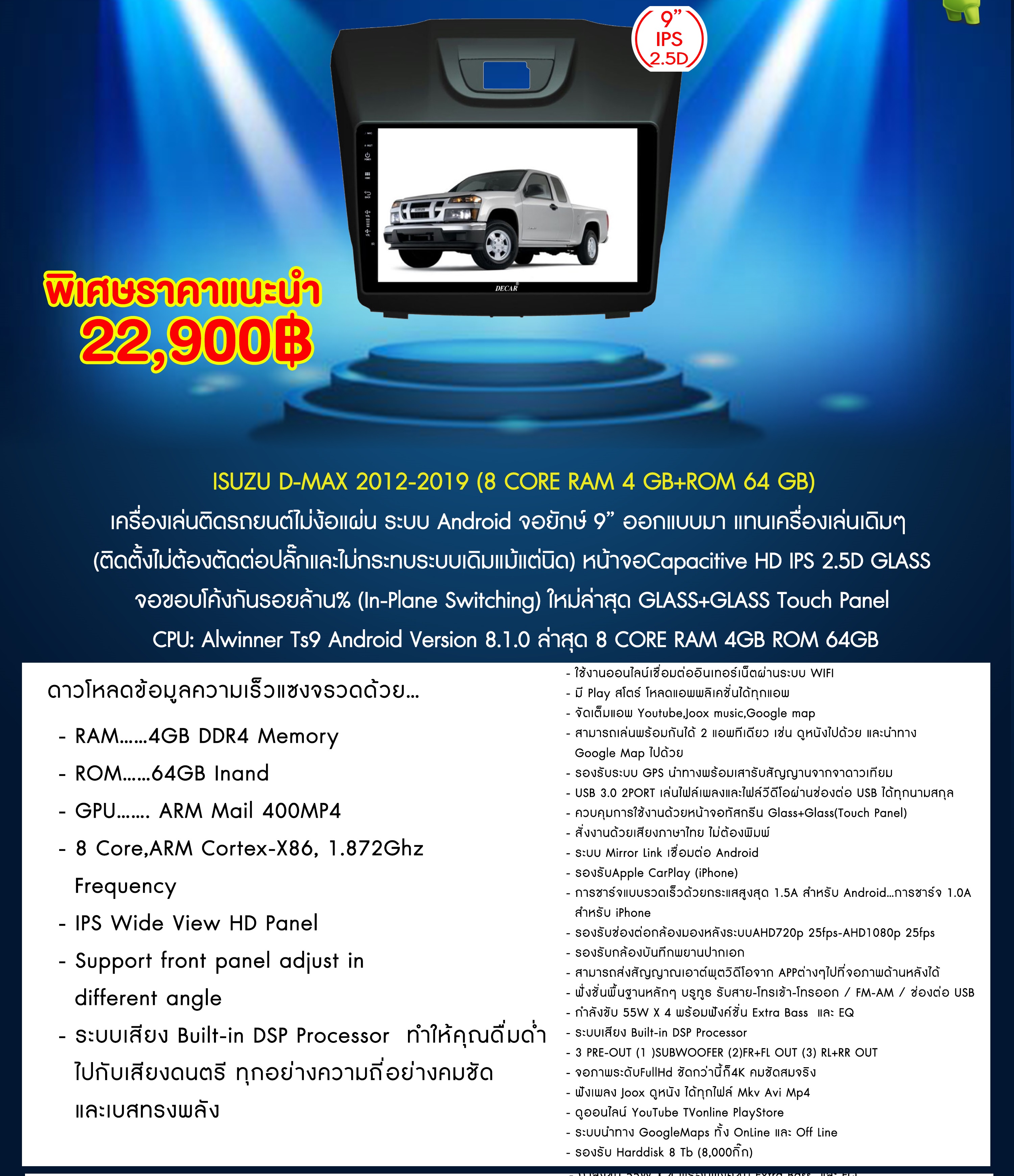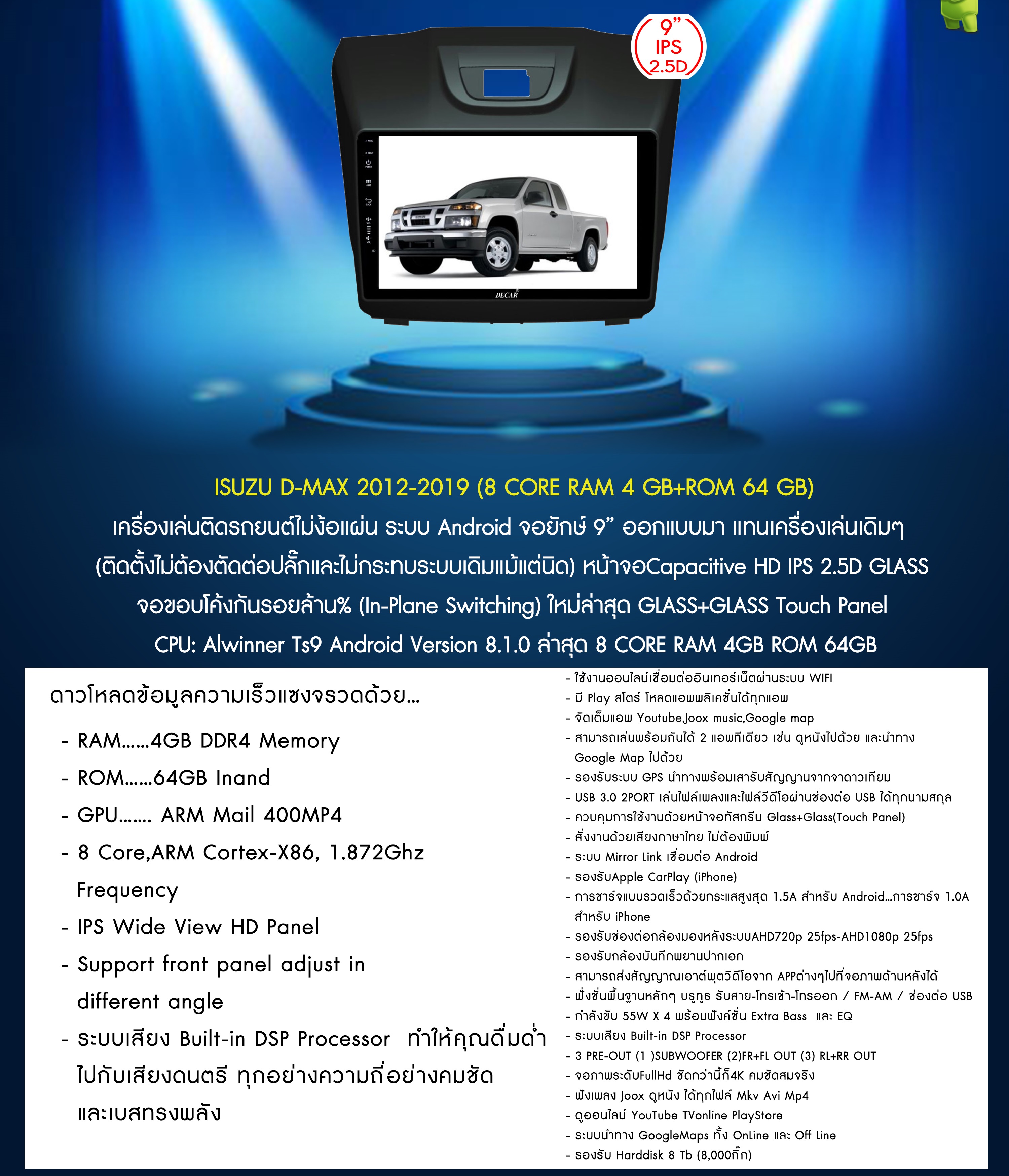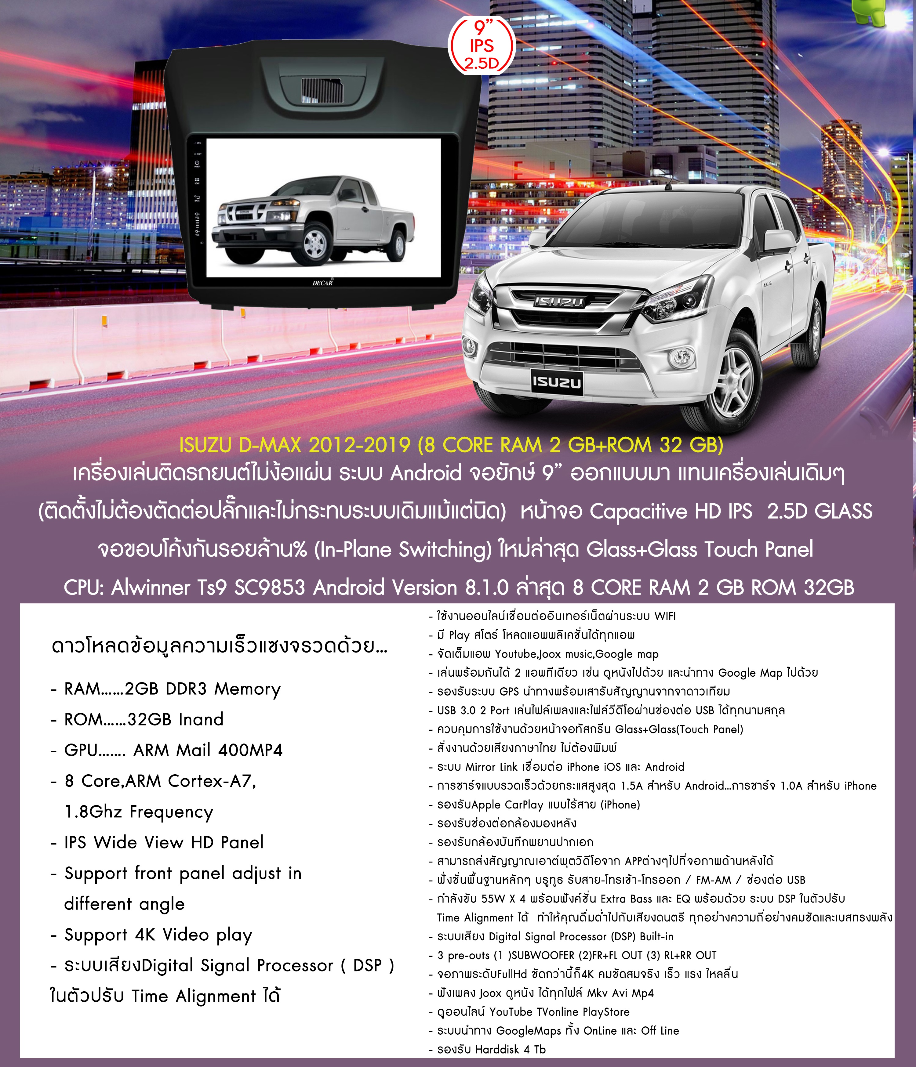 จอแอนดรอยติดรถ ISUZU ขนาด 9นิ้ว D-MAX 2012-2019 ปลั๊กตรงรุ่น