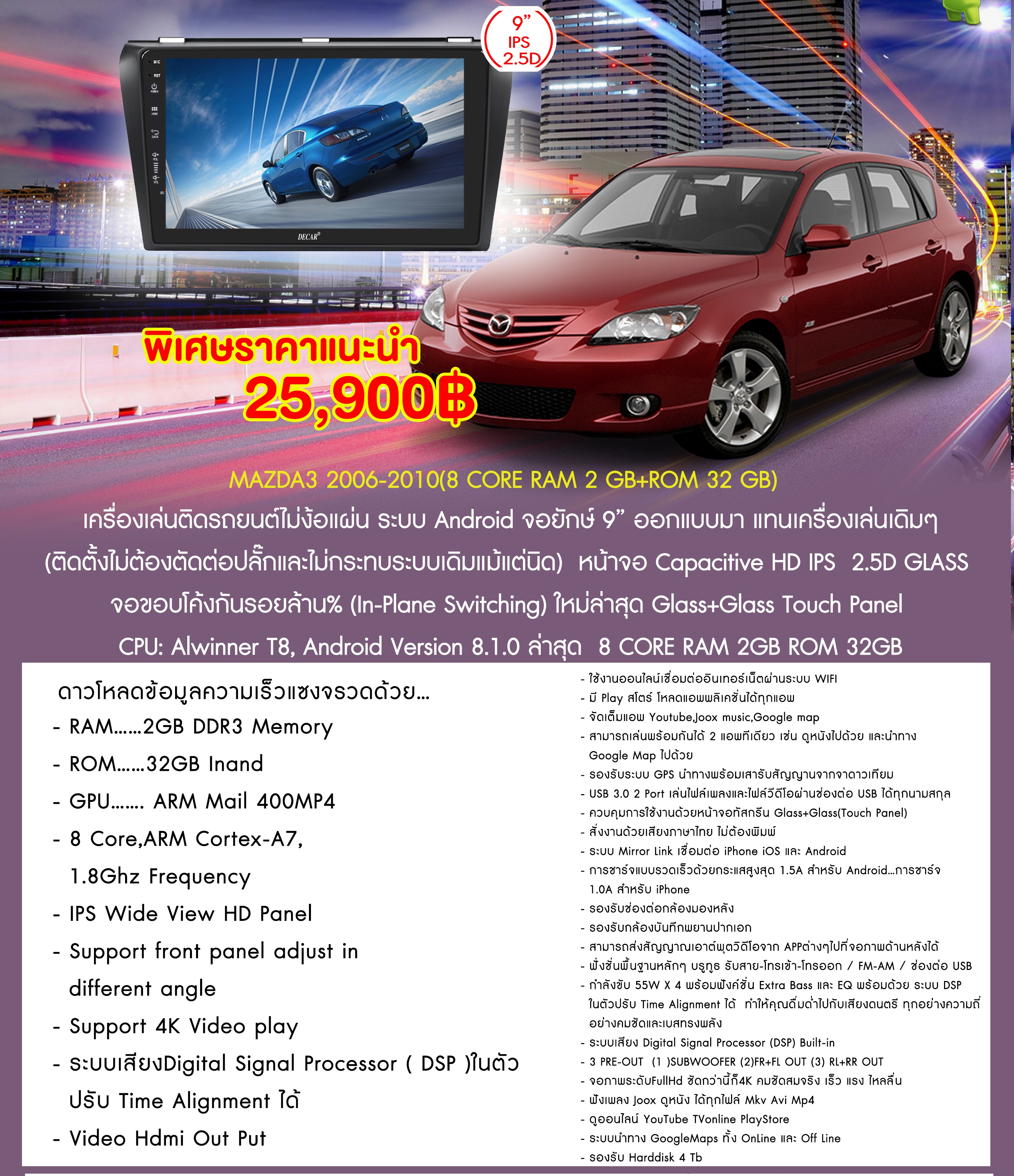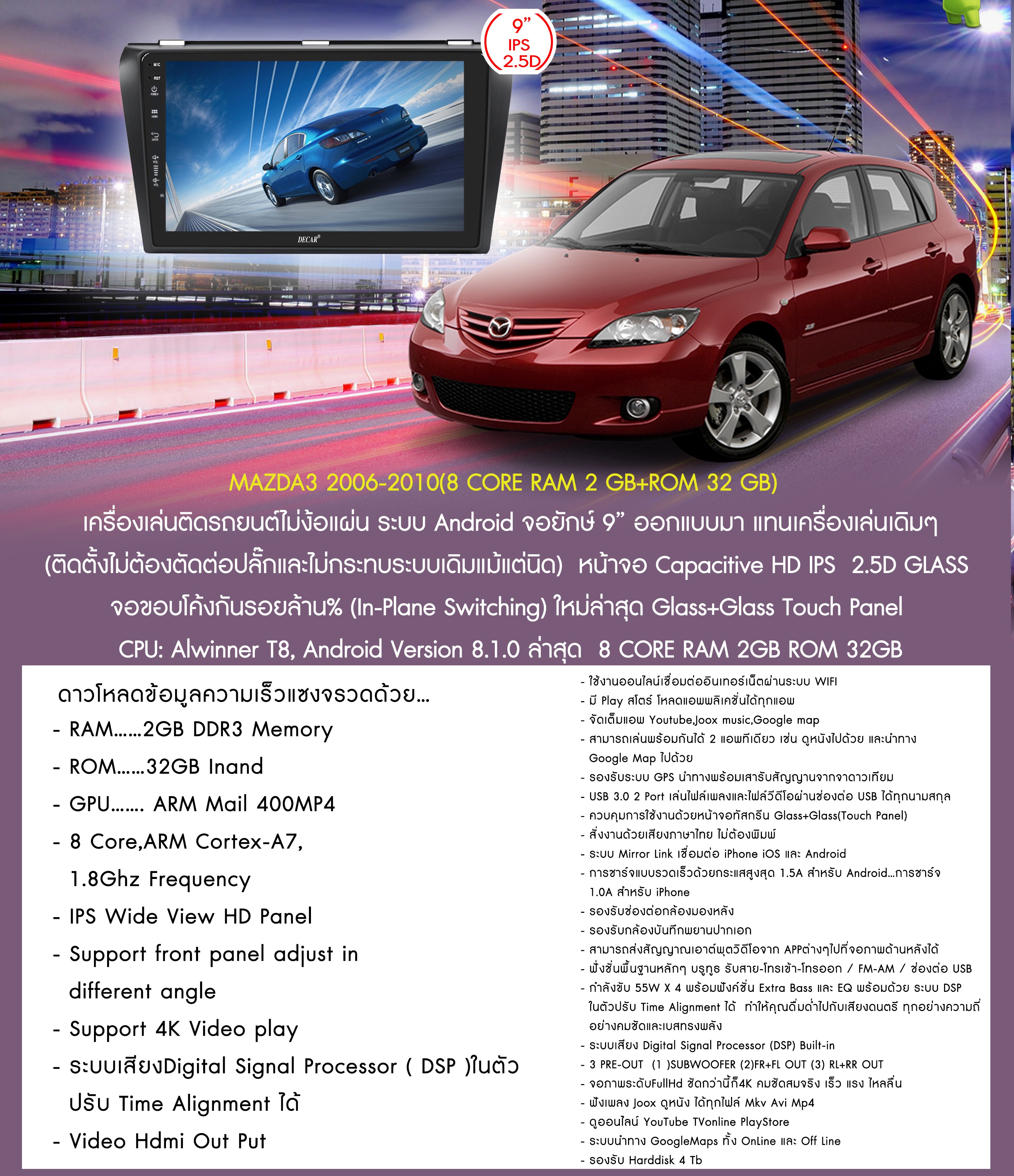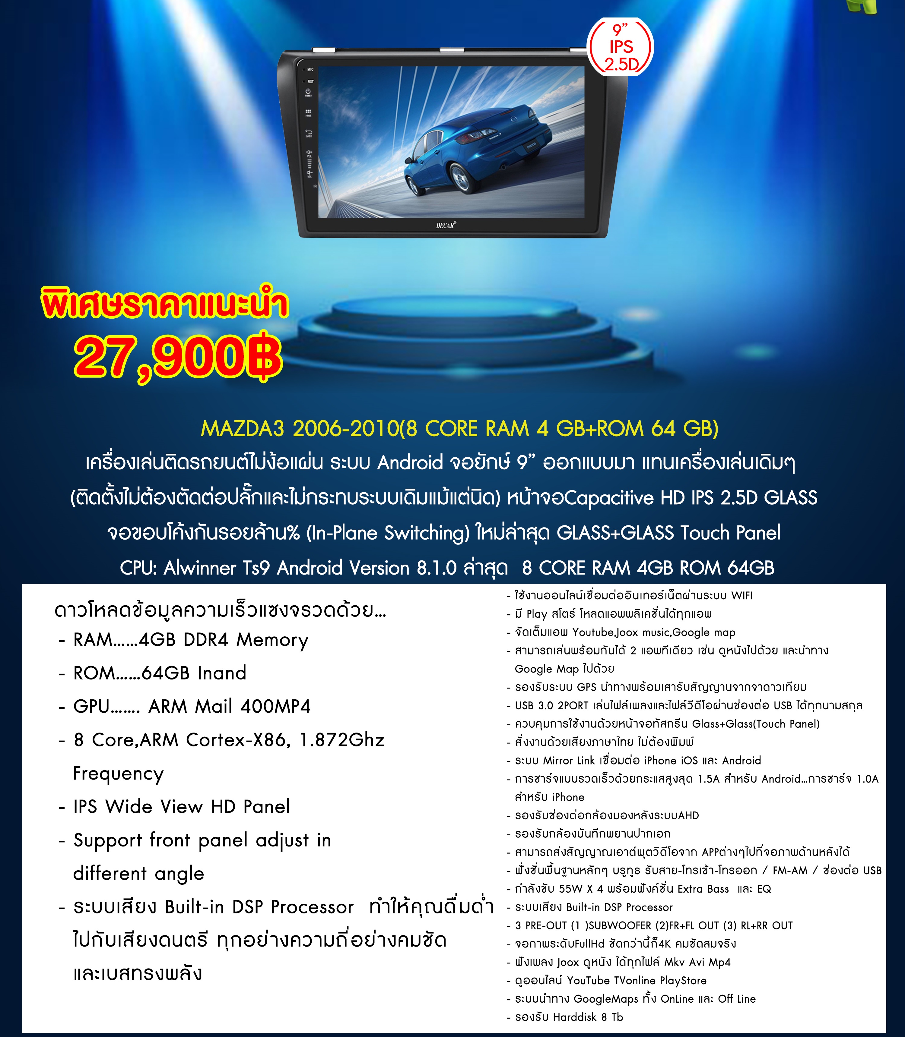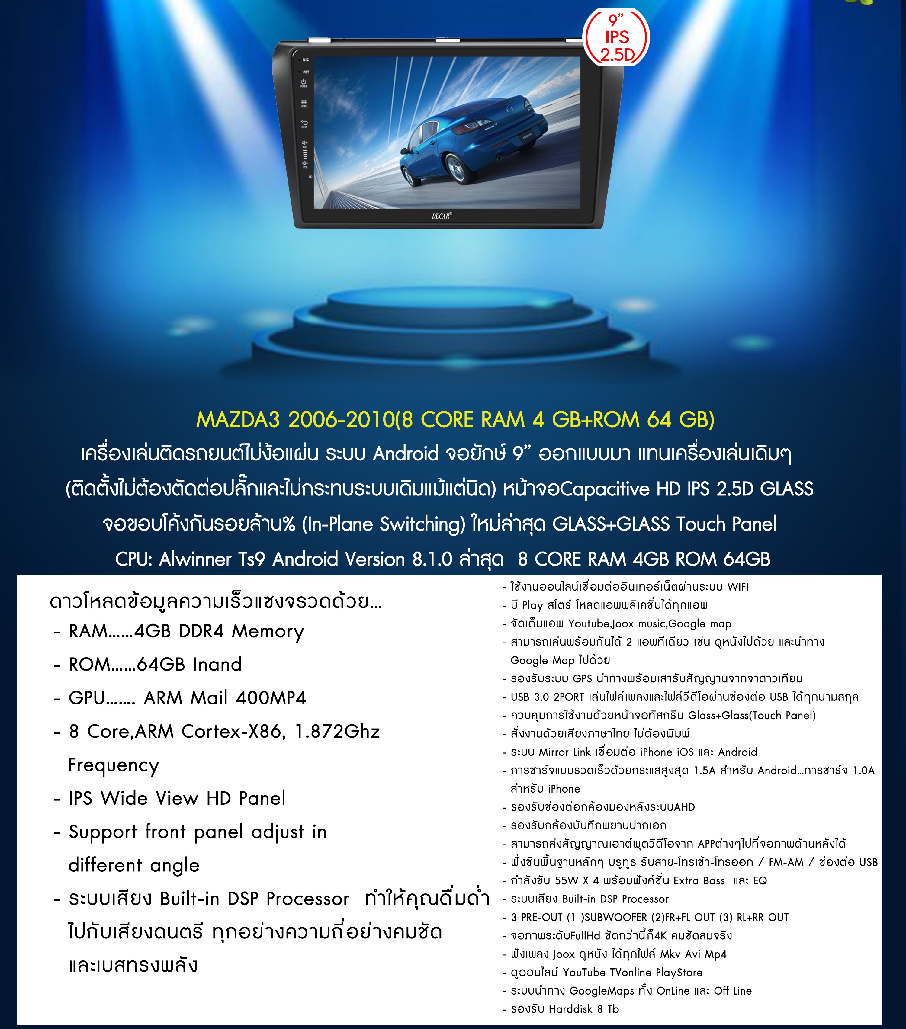 จอแอนดรอยติดรถยนต์ MAZDA ขนาด 9นิ้ว MAZDA3 2006-2010 ตรงรุ่น